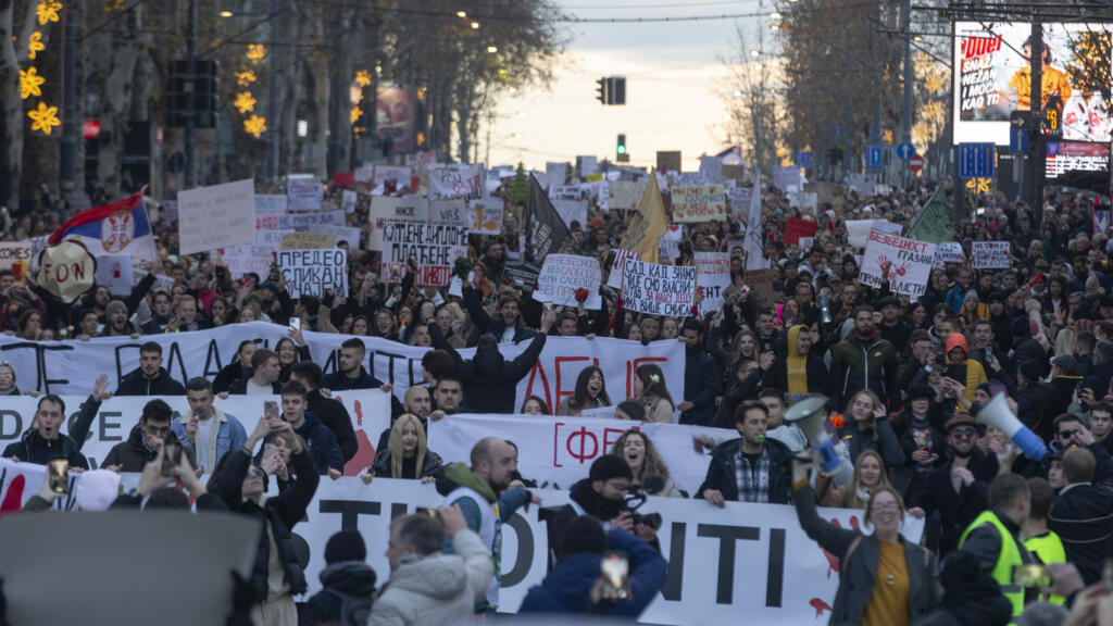 Tens of thousands of people gathered in Belgrade Sunday to protest against President Aleksandar Vucic and his ruling Serbian Progressive Party (SNS). The rally, organized by students and farmer unions, was part of a wider movement demanding accountability for the collapse of a railway station roof that killed 15 people last month.