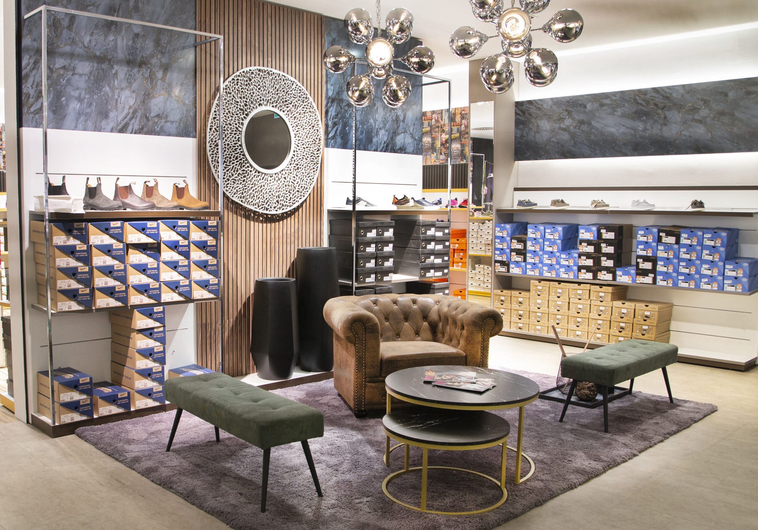 On a spacious area of 580 sqm, customers can expect a wide selection of shoes for women, men and children. The bright, airy design is intended to accommodate the needs of customers. Generous seating areas underline the lounge character of the area.